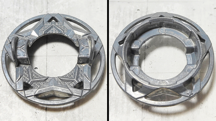 特に、上段クリアパーツのネジがまかれている部分が、引っかかりやすくなっているため、バトル中この部分に攻撃を食らったりするとあっさりバーストされることもあります。