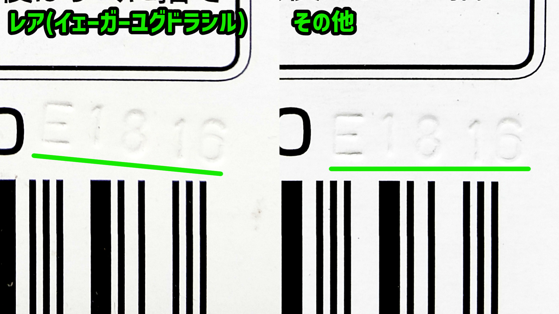 イェーガーユグドラシルはランブー3のレアベイですが、ランブー3のパッケージ裏面の刻印には、斜めになっているものと普通のものがあり、斜めの刻印のものにイェーガーユグドラシルが封入されており、サーチが可能でした。