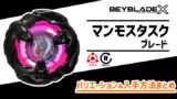 パーツ紹介ベイブレードXのビット「M(マージ)」の基本情報と、カラーバリエーションや入手法をまとめています。